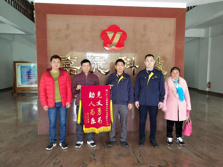 2019年1月3日上午,梅縣區(qū)丙村鎮(zhèn)群眾鄒明華夫婦,帶著一面繡有“救死扶傷·見義勇為”的錦旗送到廣東嘉元科技股份有限公司員工接送車駕駛員薛小林手中,以深深的感謝薛小林對其兒子鄒貴寶的救命之恩。
